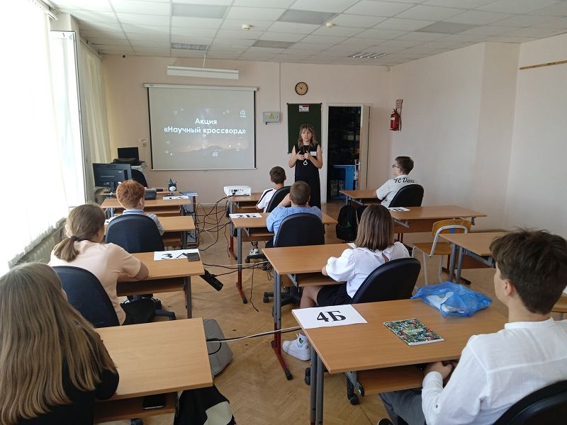 Акция «Научный кроссворд» 02 сентября 2022 Советник директора по воспитанию и взаимодействию с детскими общественными организациями Колтунова А. А. с обучающимися 7А класса приняла участие в Акции Научный кроссворд . Ребята с удовольствием проверили свои знания, отвечая на вопросы интерактивного кроссворда.