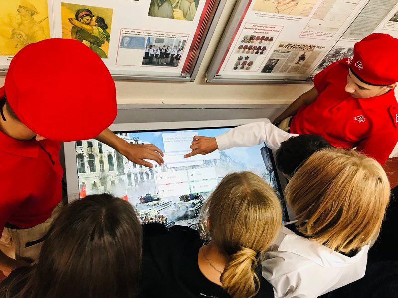 Участниками юнармейского движения были организована раздача тематических информационных материалов о Дне окончания Второй мировой войны. Музейный урок продолжила интерактивная викторина о Второй мировой войне. Используя возможности интерактивного оборудования, ребята проверили свои знания о событиях Второй мировой войны.