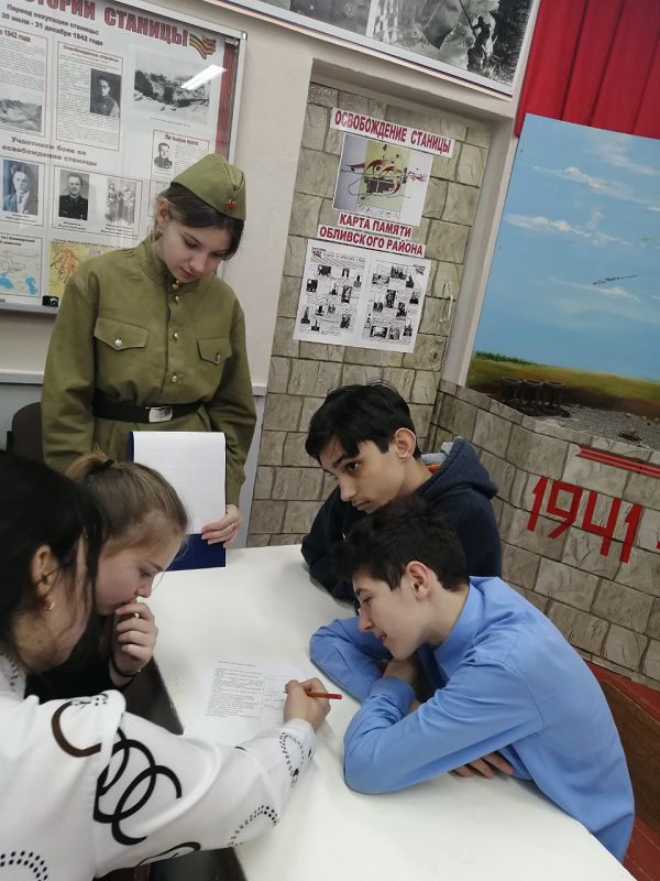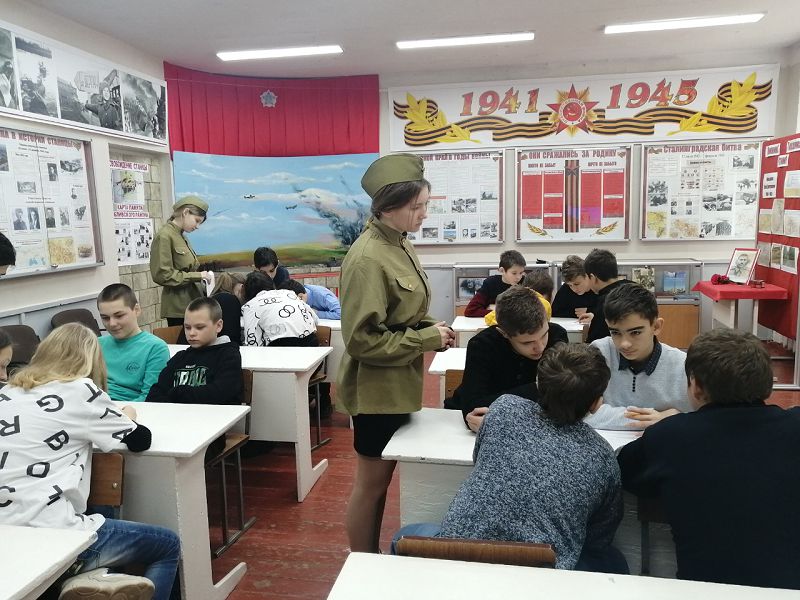 Урок Мужества «Великая битва на Волге» 02 февраля 2022 2 февраля в Зале Боевой Славы МБОУ «Обливская СОШ №2» прошел Урок Мужества «Великая битва на Волге», посвященный Дню воинской славы России — Дню разгрома советскими войсками немецко-фашистских войск в Сталинградской битве. Цель мероприятия: формирование патриотических чувств, сохранение памяти о подвиге нашего народа в годы Великой Отечественной войны, расширение познавательного интереса обучающихся к истории своей страны. Урок Мужества подготовили и провели для учащихся 7Б класса активисты школьного музея — участники следопытского отряда «Поиск» Калашникова Мария и Кибасова Екатерина. На мероприятии учащиеся узнали о важных периодах Сталинградской битвы, о ее историческом значении, о великих подвигах героев Сталинградской битвы и защитников Сталинграда, о жестоких сражениях по освобождению города-героя. Урок сопровождался мультимедийной презентацией, чтением стихотворений. Ребятам был продемонстрирован фильм о героическом подвиге советского народа при освобождении Сталинграда. Участники мероприятия почтили Минутой молчания память павших героев Отечества. С большим интересом учащиеся приняли активное участие в викторине о Сталинградской битве.