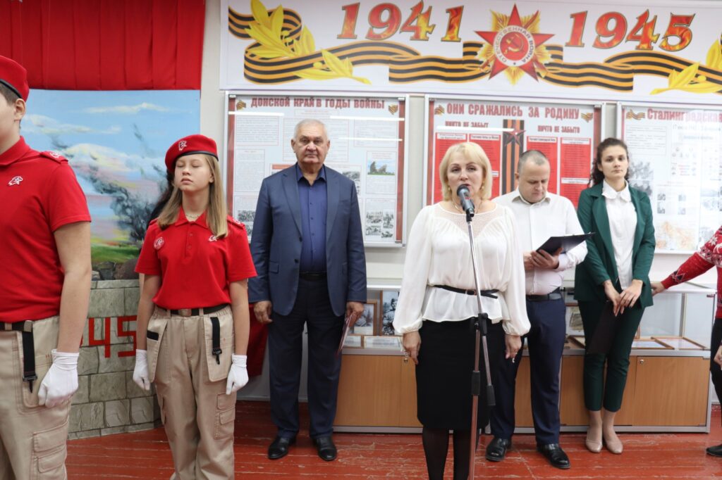 На мероприятии присутствовали Александр Петрович Герасимов, заместитель Главы Администрации Обливского района по вопросам муниципального хозяйства и строительства, ведущий специалист Отдела образования Администрации Обливского района Татьяна Сергеевна Родина, участники юнармейского движения школы, учащиеся 10 и 11 классов, педагоги.
